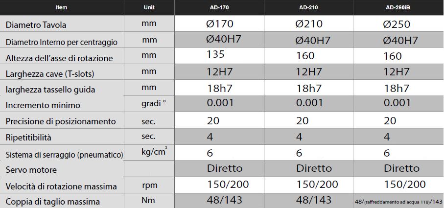 Tavola rotante NC con motore diretto